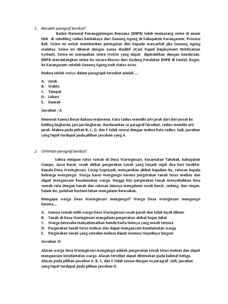 Pengertian paragraf adalah kumpulan kalimat yang biasanya mempunyai satu ide pokok dan cara penulisannya sedikit menjorok ke bagian dalam atau menggunakan garis baru. Soal memaknai kata istilah dalam paragraf ini merupakan kelanjutan dari latihan soal mengambil informasi dari isi teks sederhana untuk melengkapi tabel. Pabrik mencemarkan air di daerah sekitarnya. Arti kata limbah pada paragraf tersebut adalah 21219988.