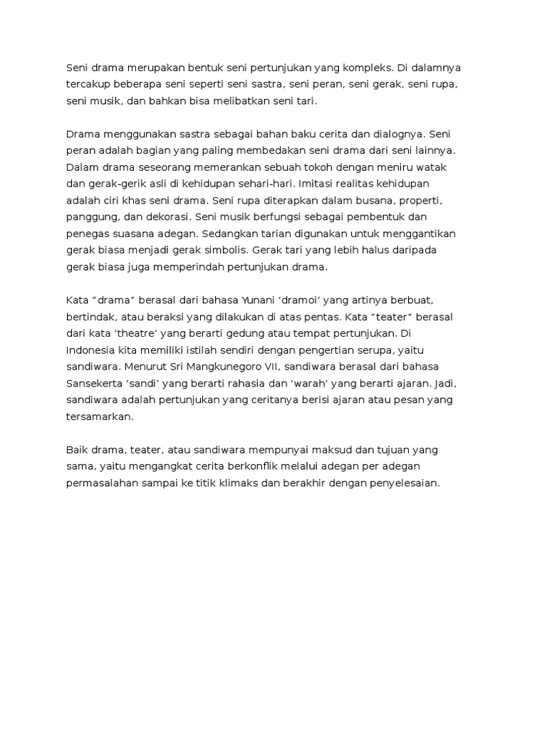 Pengertian drama berasal dari bahasa yunani draomai yang berarti berbuat bertindak atau beraksi. Drama sendiri berasal dari bahasa yunani yaitu draomai yang berarti berbuat bertindak dan sebagainya. Seperti yang tampak pada contoh teks drama tersebut bahwa kata kata ganti yang dimaksud adalah aku saya kami kita kamu. Pementasan naskah drama dikenal dengan istilah teaterdapat dikatakan bahwa drama berupa cerita yang.