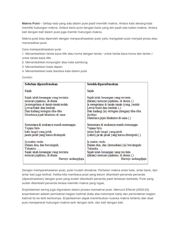 Kedua parafrase dengan menulis kembali isi puisi dengan penambahan kata kata baru dan disertai dengan perubahan susunan kata dalam puisi. Siapa yang tak setuju dengan hal itu. Discussion in science started by hasbiallah sep 4 2016. Bentuk kedua mirip dengan prosa.