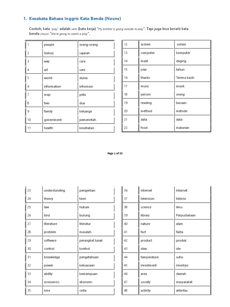 Berikut ini adalah daftar lengkap kata benda dalam bahasa inggris dengan artinya dalam bahasa indonesia yang bisa menjadi sumber referensi buat kamu yang sedang mempelajari bahasa inggris dan menghapalkan berbagai kata benda bahasa inggris yng sering dipakai dalam kegiatan dan aktifitas sehari hari. Kata kata benda bahasa inggris yang ada di rumah dan artinya kata benda didalam bahasa inggris sering disebut juga dengan noun. Sedangkan kata benda plural noun atau kata benda jamak adalah kata benda yang terdiri dari lebih dari satu buah kata benda singular nouns umumnya disertai determiners aan this that. Tunggal atau jamak dan kalimat kalimat dalam bahasa inggris serta kosa kata.