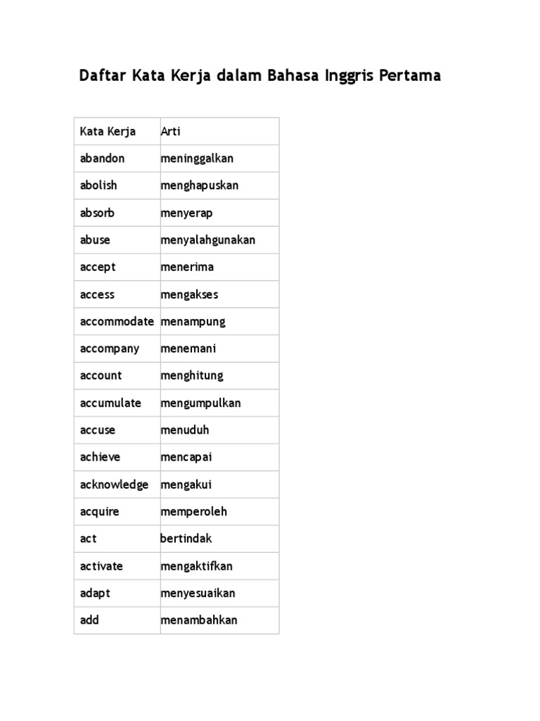 Bahasa Inggrisnya Kata Kerja