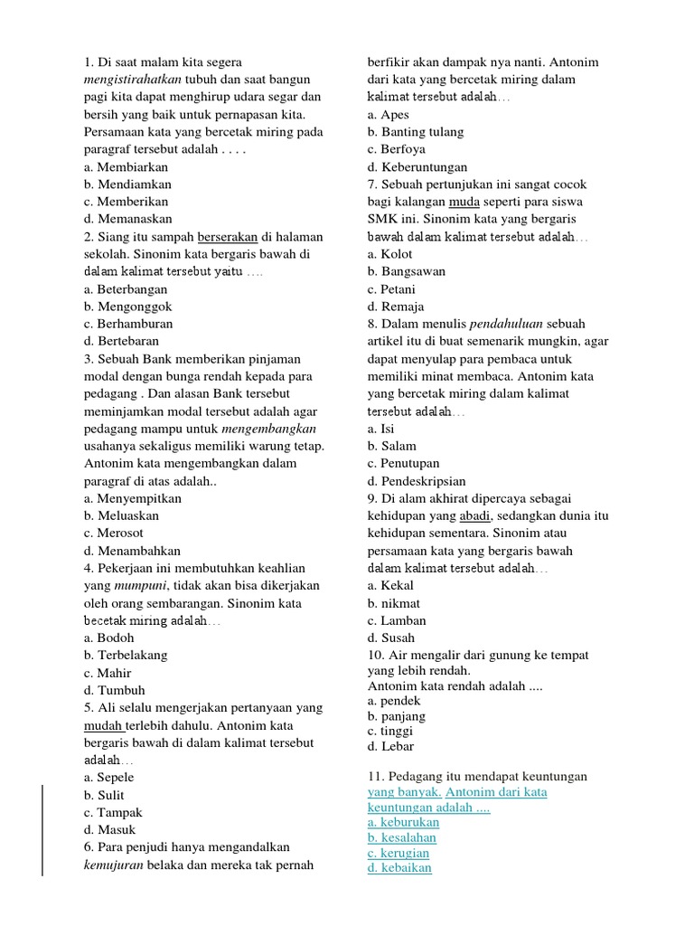 Spi punya perbendaharaan sinonim atau persamaan kata dan antonim atau perlawanan kata yang lumayan banyak. Kami mengumpulkan soal dan jawaban dari tts teka teki silang populer yang biasa muncul di koran kompas jawa pos koran tempo dll. Kami mengumpulkan soal dan jawaban dari tts teka teki silang populer yang biasa muncul di koran kompas jawa pos koran tempo dll.