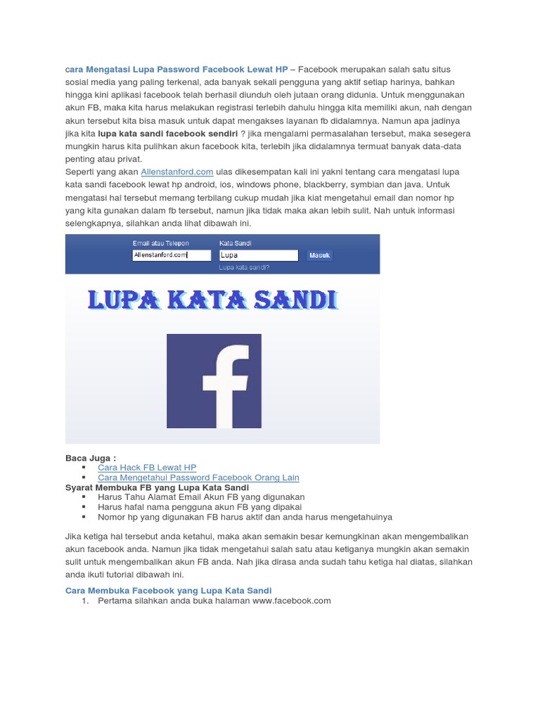 Demikian informasi yang bisa admin bagikan kali ini mengenai cara untuk mengetahui password facebook orang lain nah buat sobat yang kepo ingin tahu isi dari pesan facebook atau apapun. 2 trik mengetahui kata sandi facebook orang lain. Cara mengatasi lupa kata sandi facebook. Apabila kalian ingin melihat langkah langkahnya silahkan lihat di bawah ini.