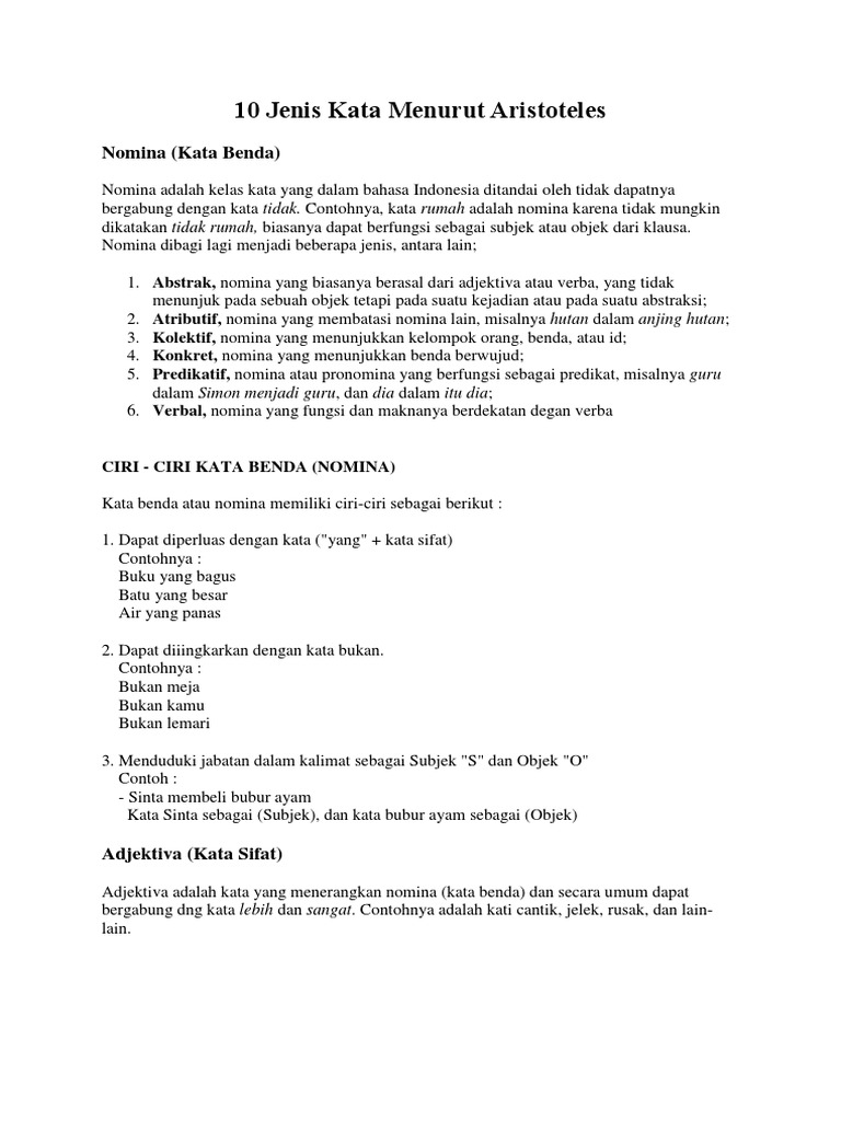 Baca ini pengertian ciri ciri kata benda nomina lengkap dengan contohnya sehingga dapat di simpulkan bahwa arti kata sifat adjektiva adalah suatu kelas kata yang merubah suatu kata benda ataupun kata ganti dengan. Ciri ciri kata kerja dan contohnya dalam kalimat merupakan dasar atau salah satu cara untuk membedakan kata kerja dengan kata lainnya dalam sebuah kalimat. Kita dapat membedakan kata sifat dengan jenis kata lainnya dengan melihat ciri cirinya. Kata sifat atau adjectiva termasuk kedalam kelompok kata yang berperan untuk mengubah kata benda dan juga kata ganti agar membuatnya menjadi lebih mudah dipahami dan lebih spesifik.