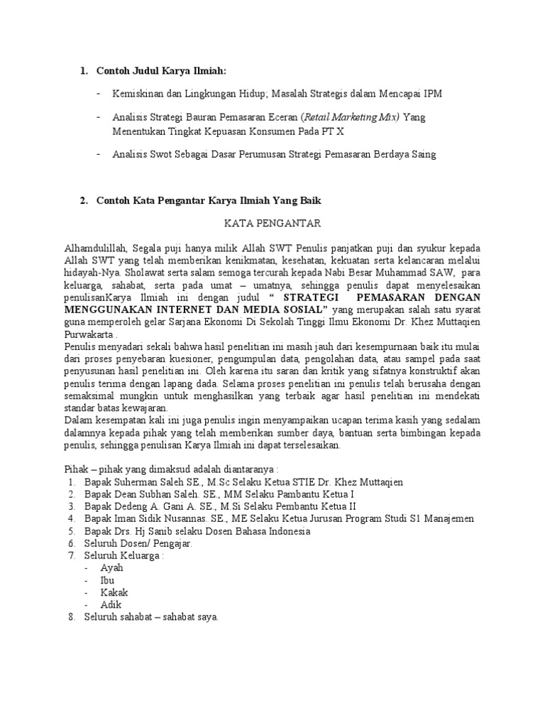 Contoh Kata Pengantar Dalam Karya Ilmiah