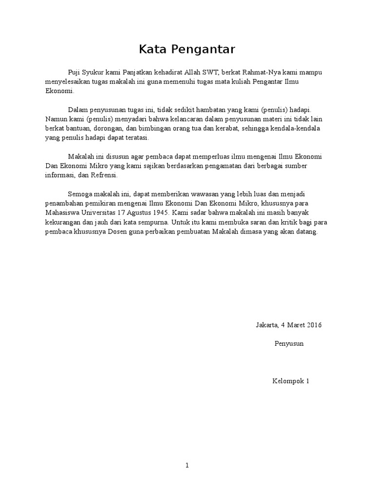 Contoh kata pengantar makalah ekonomi. Contoh kata pengantar makalah ekonomi jika anda sedang mencari contoh dan referensi untuk membuat kata pengantar makalah bertema ekonomi berikut ini adalah 2 buah contoh kata pengantar makalah dan karya tulis mata pelajaran ekonomi yang bisa anda simak sebagai acuan. Karena makalah atau laporan akan terlihat kurang baik dan lengkap bila tidak disertai dengan ucapan kata pengantar di dalamnya. Artikel contoh kata pengantar makalah ekonomi berkut ini adalah sebuah contoh kata pengantar makalah ekonomi yang bisa menjadi sumber referensi pembuatan kata pengantar sendiri jika anda belum tahu cara membuatnya pada saat mendapatkan tugas pembuatan makalah di sekolah atau kampus. 15 contoh kata pengantar makalah yang dapat kamu jadikan referensi kata pengantar adalah bagian terpenting yang tidak bisa dilewatkan dari sebuah makalah atau laporan.
