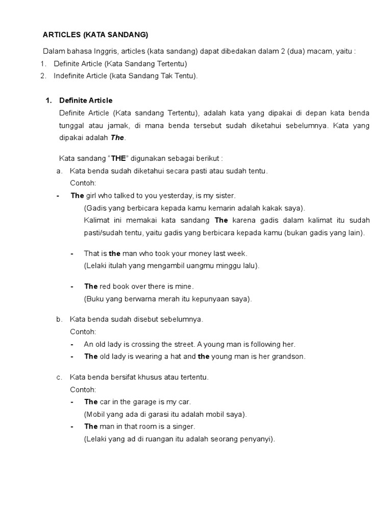 Kata Sandang Pengertian Ciri Ciri Penulisan Dan Contoh Kalimat
