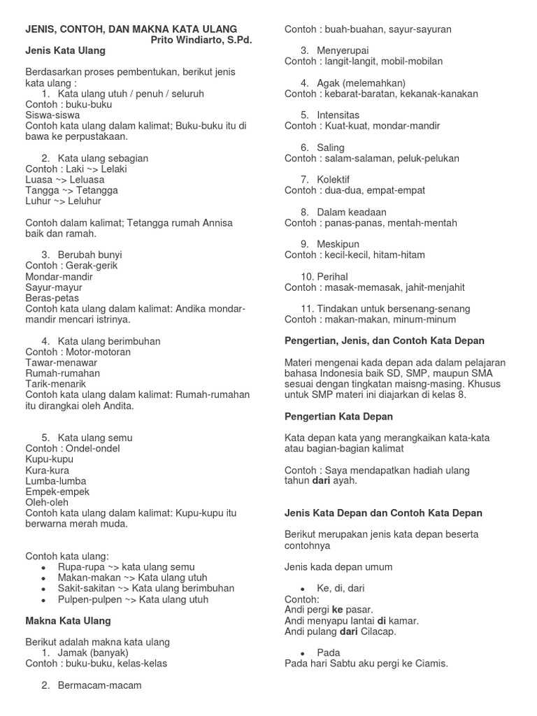 Kata ulang berdasarkan makna yang terbentuk. Kata ulang pengertian macam makna prinsip bentuk contoh. Demikianlah beberapa contoh kata ulang sebagian dan utuh dalam kalimat bahasa indonesia. Dengan kata kata yang diulang sebagian bagian dari kata dasar diulang.