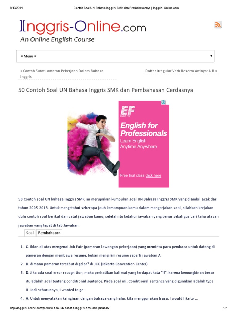 Contoh Soal Kata Sambung Dalam Bahasa Inggris