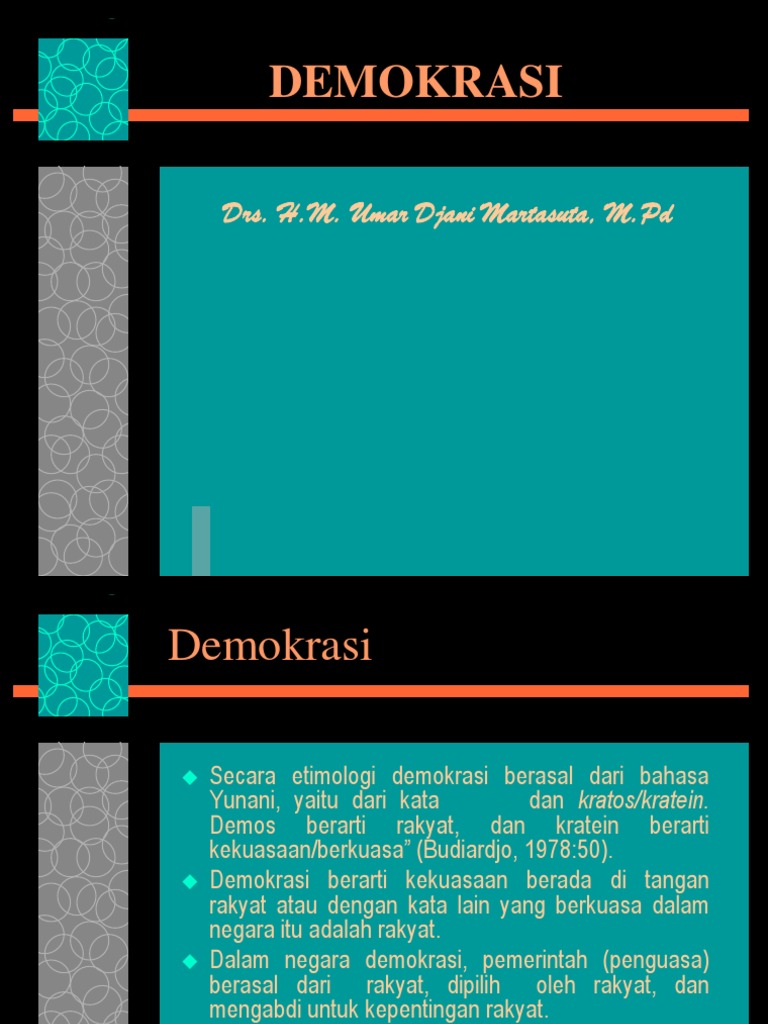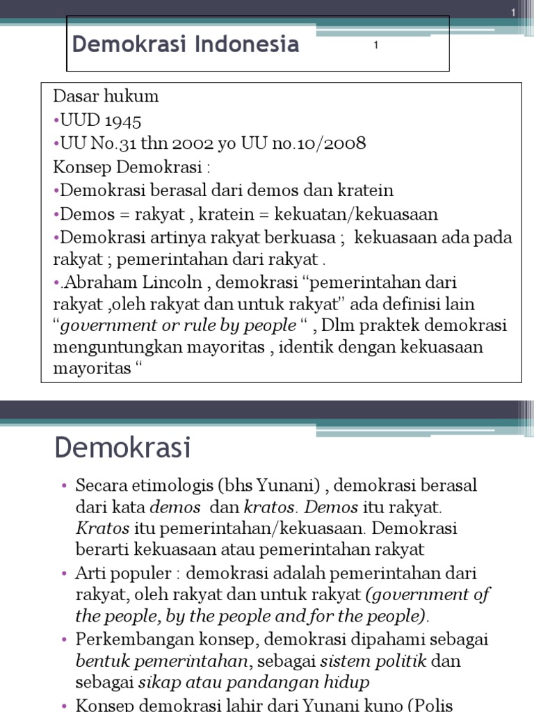 Demokrasi berasal dari bahasa yunani yaitu demos yang berarti rakyat dan kratos yang berarti kekuasaan.