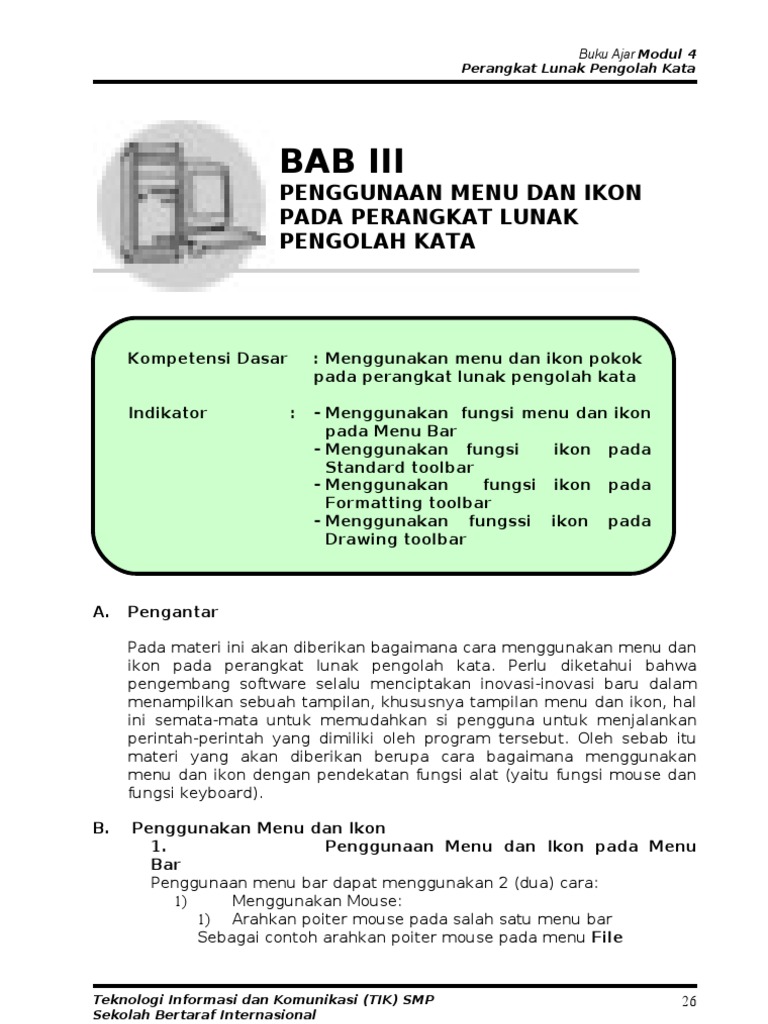 Pada waktu itu perkembangan aplikasi pengolah kata juga bertahap mulai dari aplikasi pengolah kata yang berbasis grafik pertama kali yaitu bravos kemudian berselang 3 tahun kemudian muncul produk pengolah kata baru dari microsoft yang diberi nama microsoft word. Sistem operasi operating system adalah perangkat lunak komputer software yang bertugas untuk melakukan kontrol dan manajemen perangkat keras dan juga operasi operasi dasar sistem termasuk menjalankan perangkat lunak lain seperti program program pengolah kata yang bisa digunakan untuk mempermudah kegiatan manusia. Merupakan tempat untuk menampilkan menu menu yang memuat daftar perintah perintah word. Berfungsi untuk menampilkan nama dokumen yang sedang aktif di jendela word.