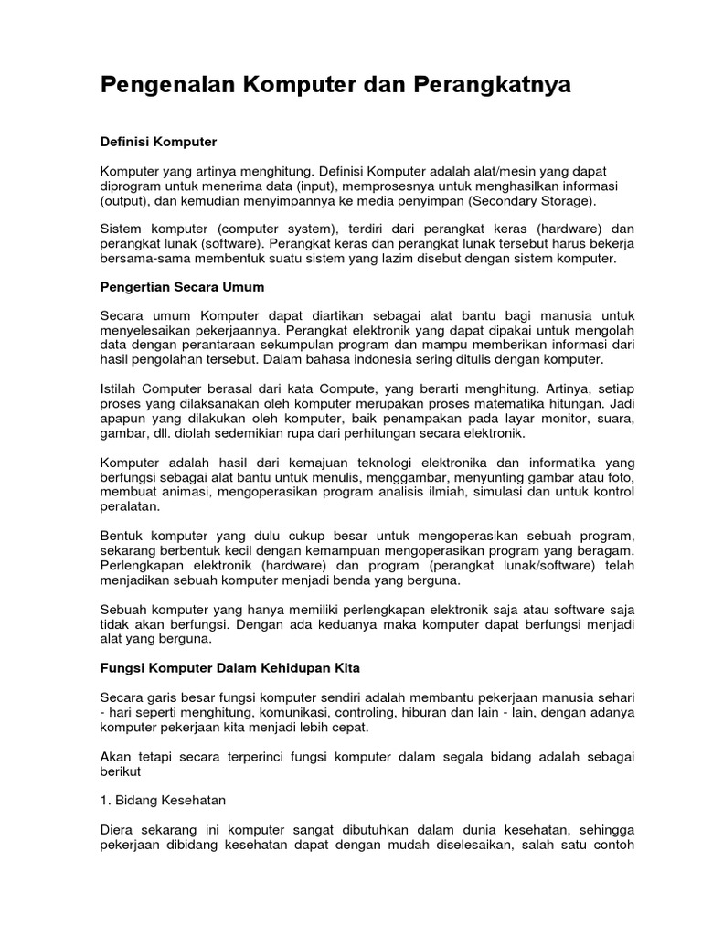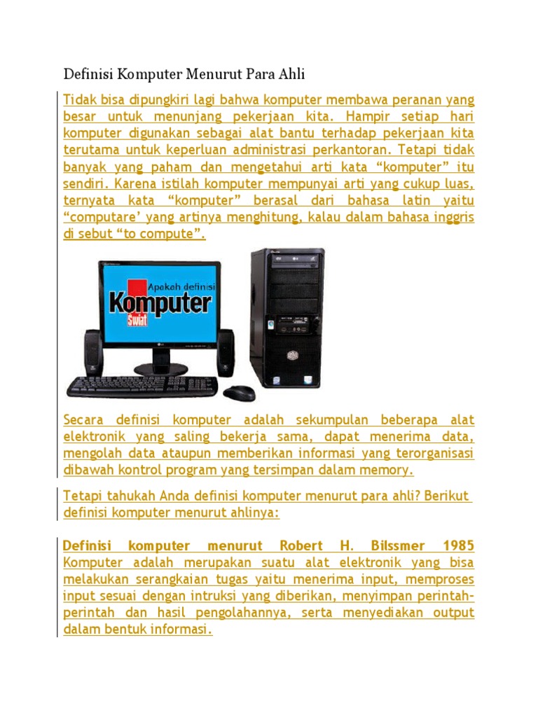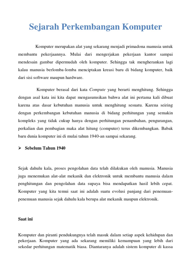Istilah komputer berasal dari kata compute yang berarti menghitung. Istilah computer berasal dari kata to compute dalam bahasa inggris atau computare dalam bahasa latin yang berarti menghitung. Istilah computer berasal dari kata compute yang berarti menghitung. Prinsip kerja komputer sama dengan prinsip kerja alat hitung sejarah perkembangan komputer.