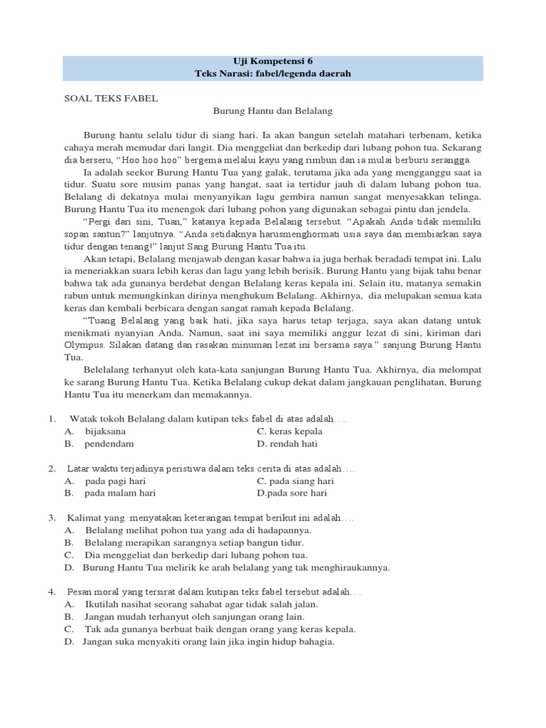 Tokoh pada cerita fabel biasanya binatang. 46 5 59 votes pengertian teks cerita fabel merupakan suatu cerita yang menceritakan dunia binatang yang tingkah lakunya seperti manusia. Penulisan kata depan dipisah dengan kata yang mengikutinya. Penggunaan kata depan pada fabel dalam teks cerita fabel biasanya juga digunakan kata keterangan tempat dan kata keterangan waktu dirangkai dengan kata depan.