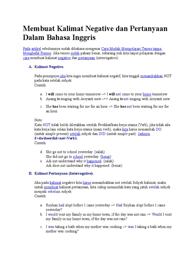 Kamu juga belajar cara membuat kalimat sederhana menggunakan kata kerja verb 1. To be dalam kalimat introgative berfungsi sebagai kata tanya. Bentuk kata kerja bahasa inggris dalam kalimat intrigative to be dan verb nya terpisah atau terletak antara subjek. Oh ya untuk mengetahui arti suatu kata kerja gampang yaitu dengan mengeceknya di google translate atau kamus yang anda miliki.