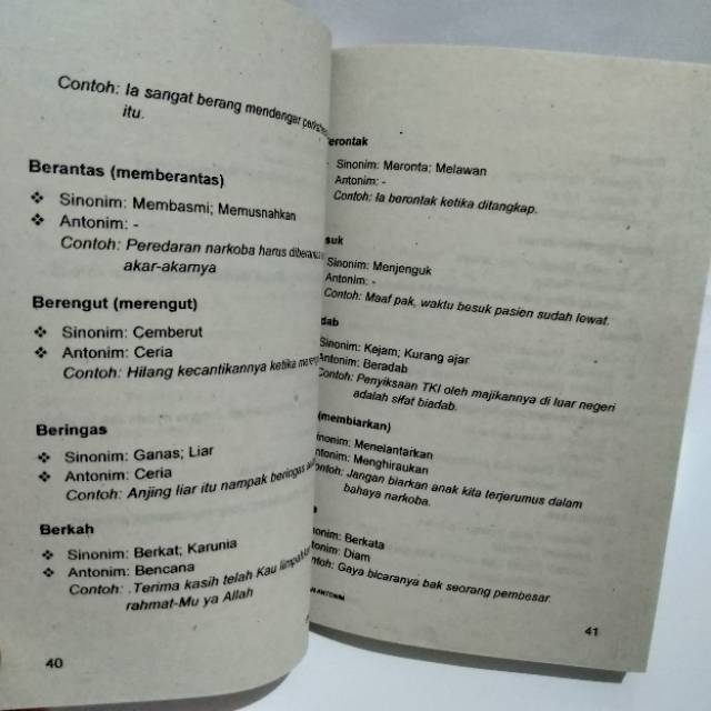 Kata antonim dan sinonim. Kata sinonim biasanya juga di sebut dengan persamaan kata yang merupakan bentuk kata yang memiliki makna yang mirip atau sama dengan bentuk kata lain. Tesaurus merupakan buku referensi berupa daftar kata dengan sinonim dan antonimnya buku tersebut berisi referensi berupa informasi tentang berbagai perangkat. Tulis kata dalam bahasa indonesia atau bahasa inggris. Adapun contoh lengkapnya silahkan kalian lihat di.