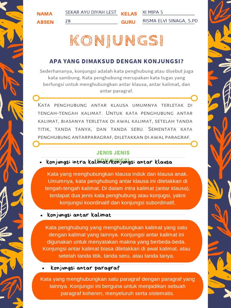 Konjungsi merupakan kata hubung dalam sebuah kalimat kata atau paragraf.