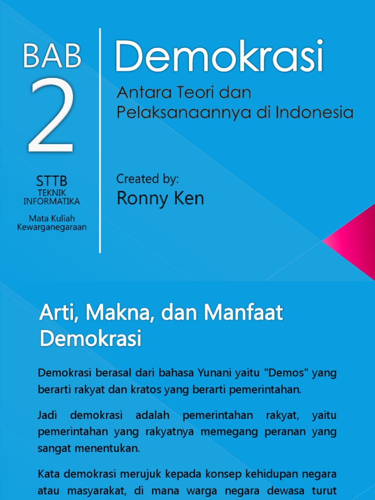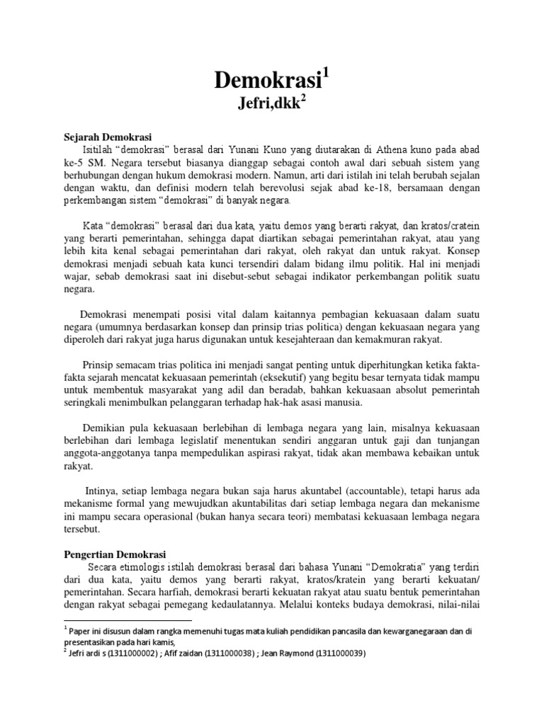 Kata demokrasi berasal dari bahasa. Kata demokrasi berasal dari dua kata yaitu demos yang berarti rakyat dan kratoscratein yang berarti pemerintahan sehingga dapat diartikan sebagai pemerintahan rakyat atau yang lebih kita kenal sebagai pemerintahan dari rakyat oleh rakyat dan untuk rakyat. Bisa kita tarik kesimpulan kalau demokrasi berarti pemerintahan rakyat. Kata demokrasi democracy sendiri sudah ada sejak abad ke 16 dan berasal dari bahasa prancis pertengahan dan latin pertengahan lama. Singkatnya senin juni 15 2020.