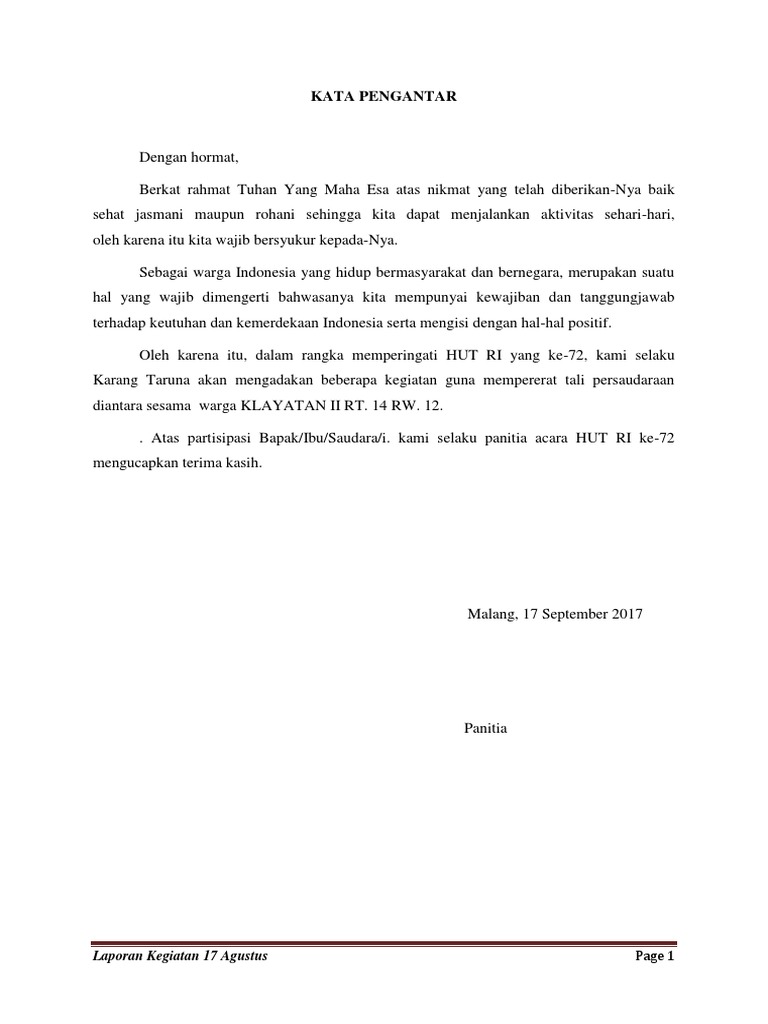 Kata kata single kata kata mutiara kata kata bijak kata kata motivasi kata kata semangat kata katasterportal kata kata cinta kata kata lelah kata kata motto kata kata sulit. Kata kata ucapan hari kemerdekaan 17 agustus 1945 hari kemerdekaan kita saat ini kita telah memasuki bulan agustus dimana pada bulan ini ada sejarah yang paling penting bagi bangsa indonesia17 agustus merupakan tanggal yang paling bersejarah dalam perjalanan bangsa indonesia sehingga pada tanggal ini sering diperingati hut ri karena pada tanggal 17 agustus bangsa indonesia memulai. Kata sambutan ketua rt di acara 17 agustus september 22 2017 klikharry kata sambutan kata sambutan rt 0 menjadi salah satu perangkat desa atau pejabat setempat tentu saja ada satu ketika akan diminta kesiapannya untuk memberikan kata sambutan. Okeloveid kata kata ucapan kemerdekaan ke 74 17 agustus 2019 17 agustus adalah merupakan hari paling bersejarah di negera kita republik indonesia.