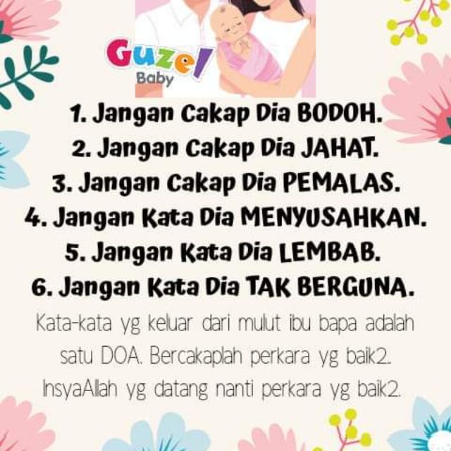 Lebih lebih lagi ibu bapa. Kalau tidak dijaga maka rosaklah semuanya.
