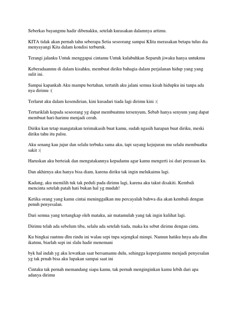 Ya karena aku cuma bisa memandangiu dari kejauhan aku cuma bisa ngasih kamu kata kata aku sayang kamu tapi aku sadar siapa diriku aja. I always wondered why i could feel others pain so deeply why i could recognize the somebody in the nobody. Kalo denger dialog dalam hati di atas agak ngenes sih ya. Kata kata sadar diri bukan siapa siapa menurut seorang filsuf terkenal dia mengatakan bahwa hidup apabila tidak ada masalah itu termasuk hidup yang tidak pantas dijalani anda bisa hidup lebih baik lagi apabila terkena masalah yang harus dihadapi dan dialami karena itu semua anda bisa memperoleh pelajaran yang bisa direnungkan dan dimaknai.
