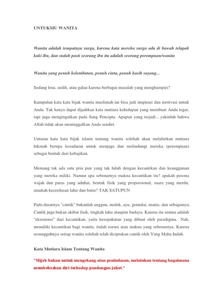 Soekarno pidato hari pahlawan 10 november 1961 keywordkata bijak islam wanita muslimah kata kata bijak cinta cinta adalah perasaan hangat yang mampu membuat kita menyadari betapa berharganya kita dan adanya seseorang yang begitu berharga untuk kita lindungi. 77 kata kata muslimah bijak islami hijrah sholeh wanita tegar lengkap juli 26 2019 6 min read kata kata muslimah di dalam dunia yang fana pasti ada sebuah hikmah yang bisa kita ambil tapi tidak semua orang bisa memahami apa maksud dari hikmah tersebut. Dan lelaki yang baik adalah untuk wanita yang baik pula surat an nur 26. Kata mutiara islami tentang hijab dan menutup aurat hijab adalah hak asasi setiap individu wanita yang ingin menutup auratnya.