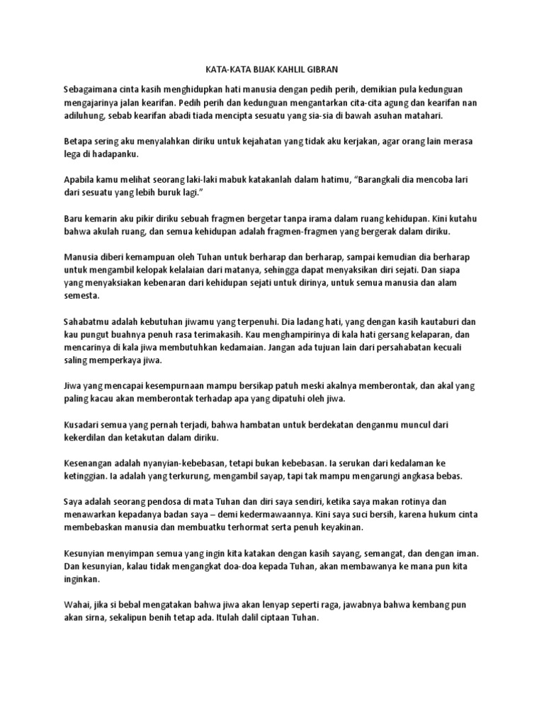 Kata kata mutiara bijak tentang kehidupan kahlil gibran cukup banyak menginspirasi orang orang tidak hanya dengan kata kata puitis tentang percintaan tetapi juga kata kata yang penuh kebijaksanaan kahlil gibran juga mengilhami banyak orang. Kata kata mutira kahlil gibran takkan lekang oleh waktu terbukti sampai sekarang masih dinikmati oleh banyak orang. Dalam membuat berbagai karya sastra baik itu syair puisi buku maupun drama beliau selalu memiliki ciri khas yang tidak bisa ditiru oleh penyair lainnya. 139 ditemukan tentang khalil gibran khalil gibran di indonesia lebih dikenal dengan nama kahlil gibran merupakan seorang penyair penulis filsuf sekaligus seniman dari lebanon.