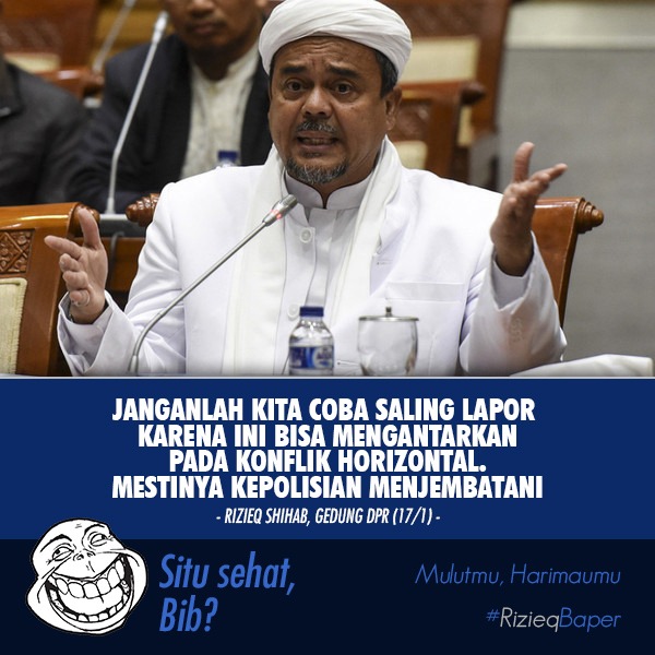 Kata kata habib rizieq. Dalam video yang berdurasi 21 detik itu habib rizieq tampak tengah berbicara di depan peserta yang hadir. Angelo melaporkan habib rizieq dengan pasal yang sama seperti kasus ahok yakni pasal 156 dan 156a kuhp. Habib rizieq memberikan arahan kepada jemaahnya untuk tak membuat kegiatan massal. Dulu orang menentang habib rizieq sekarang satu barisan smith alhadar gigin praginanto.