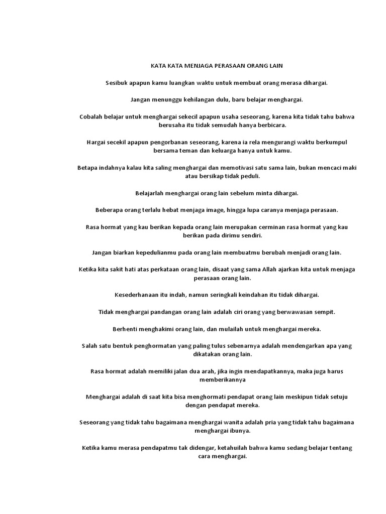 Kata Kata Hargai Perasaan