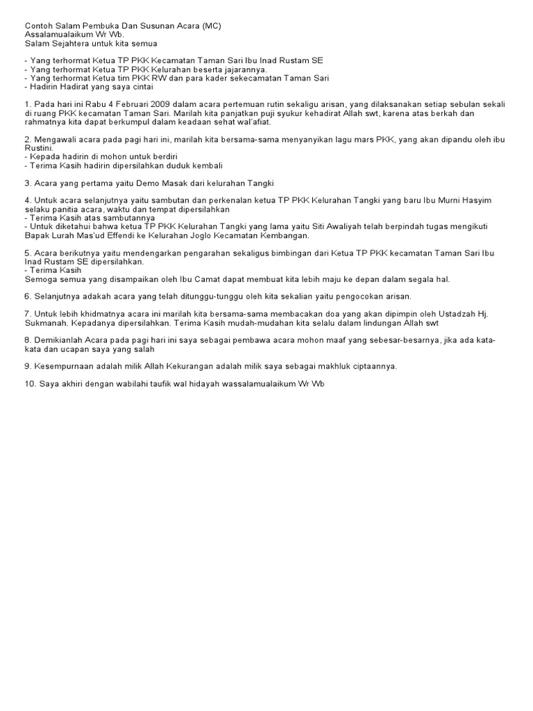 Ketika kita akan ceramah pidato atau memberikan sambutan tentunya terlebih dahulu kita harus memberikan dulu muqadimah atau kata kata pembuka baik itu menggunakan bahasa arab bahasa indonesia ataupun bahasa daerah kita sendiri inti dari muqadimah itu sendiri adalah doa dan pembuka dari apa yang akan kita kerjakan atau kita bicarakan insya allah dalam postingan ane kali ini ane akan. Masih banya lagi teks pembawa acara yang dapat anda jadikan sebagai inspirasi dan ide dalam memandu sebuah acara. Adanya mc ini diperlukan untuk memandu sebuah acara agar acara tersebut dapat berjalan atau berlangsung dengan baik dan tertata rapi. Mc harus mampu.
