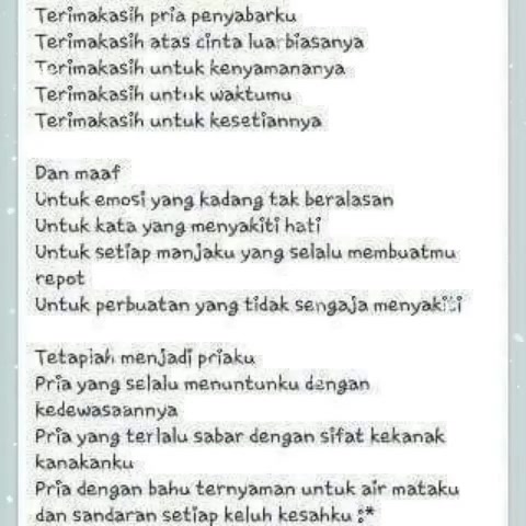 Kata kata kesabaran dan ketulusan adalah ungkapan yang seharusnya keluar dari hati dan mulut ketika mendapat masalah atau cobaan hidup. Orang yang mampu bertahan atau mereka yang selalu menang bukanlah dia yang selalu menang tapi melainkan dia yang selalu tetap kuat ketika dia jatuh sekalipun. Pada dasarnya manusia selalu diselimuti perasaan cinta yang tumbuh di hati mereka. Tuhan menyuruh kita sabar dan tetap bersyukur apapun keadaan yang kita hadapi karena pada hakikatnya manusia tidak akan diuji di luar batas kemampuannya.