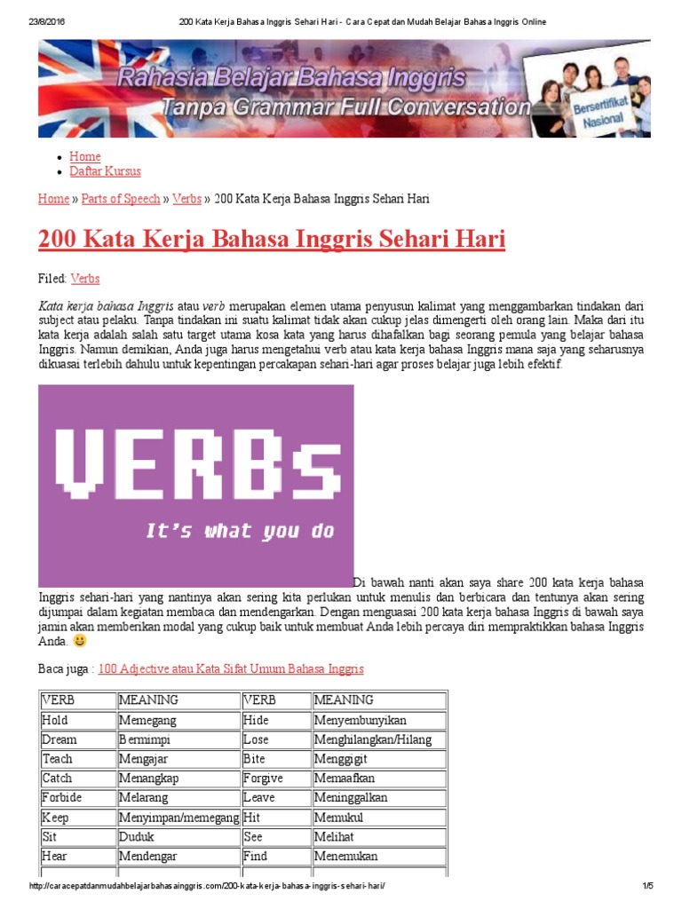 Kata Kerja Dan Kata Sifat Dalam Bahasa Inggris