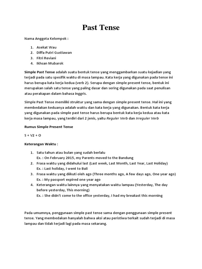 Kata kerja bisa juga menjelaskan suatu proses yang terjadi. Penggunaan kata kerja verb 2 dalam kalimat simple past tense. Nah kata kerja berperan sebagai predikat. Untunglah tidak banyak kata kata kerja tidak beraturan dalam bahasa inggris oleh karena itu tidak sulit untuk dihapalkan karena memang harus dihapalkan.