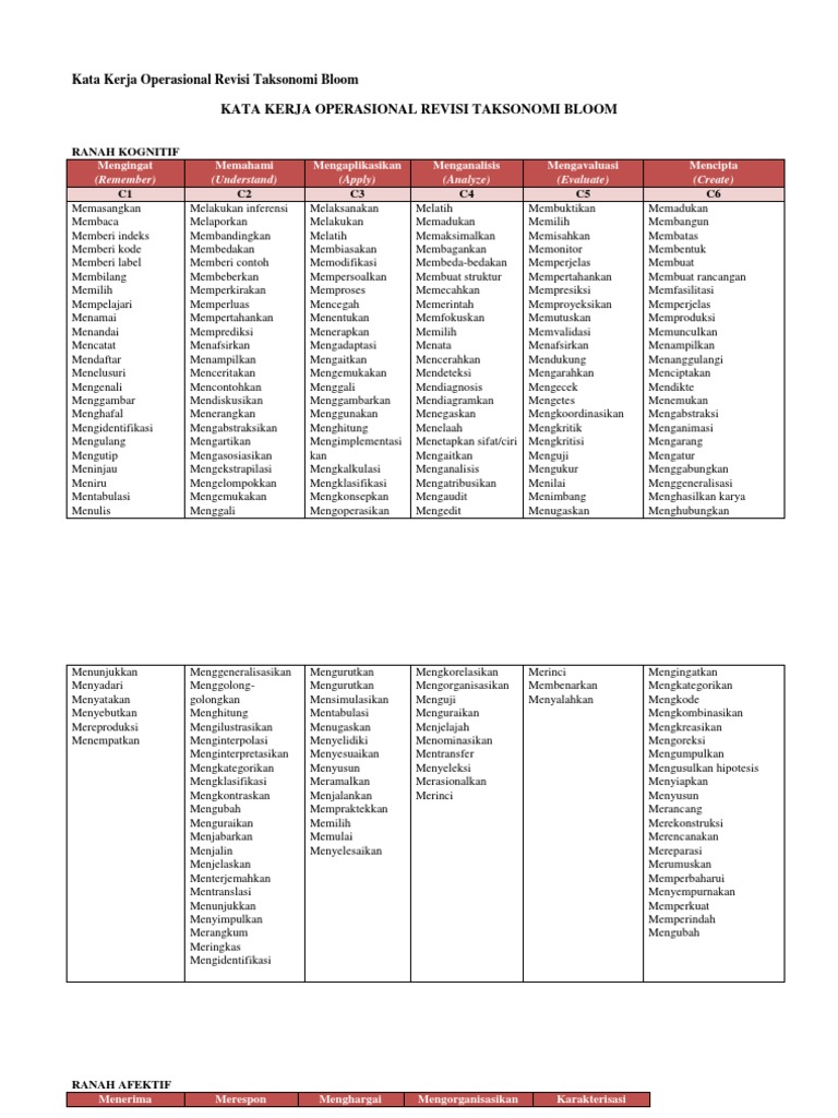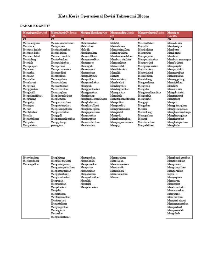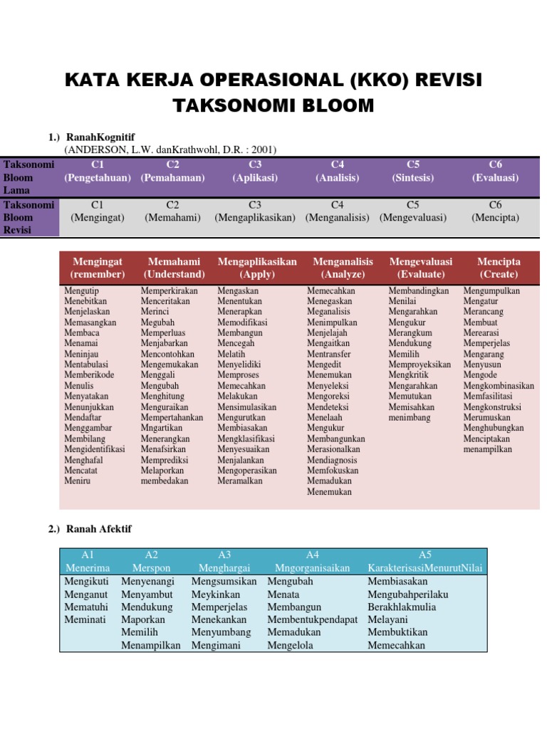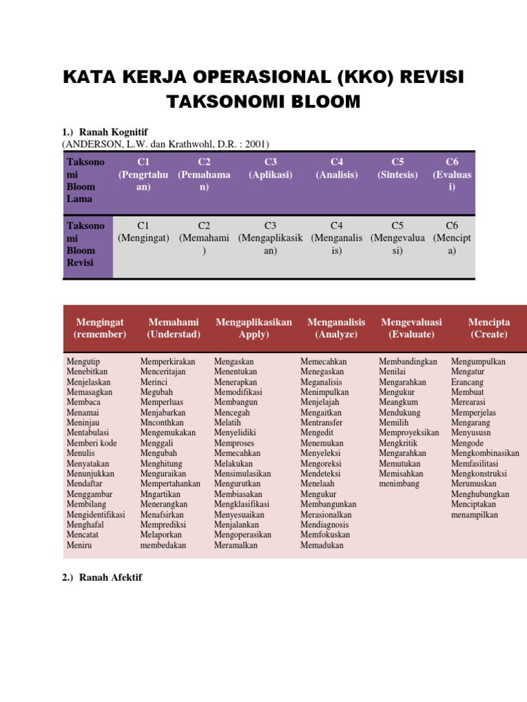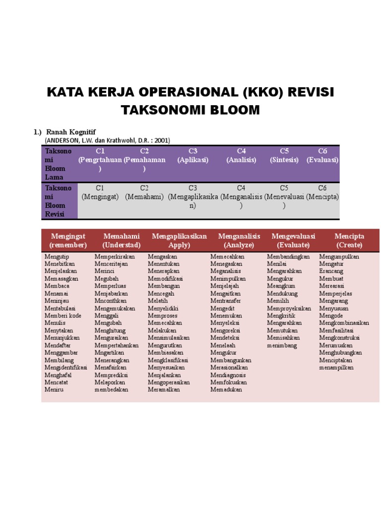 Kata kerja operasional kko revisi taksonomi bloom 1 ranah kognitif anderson lw.
