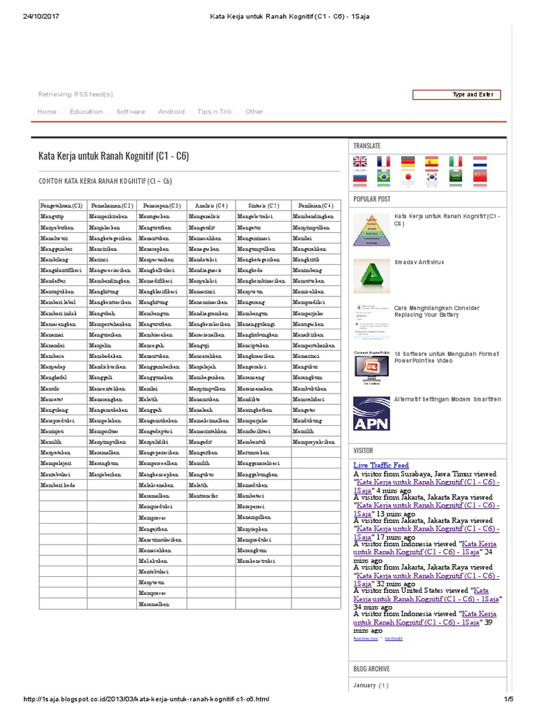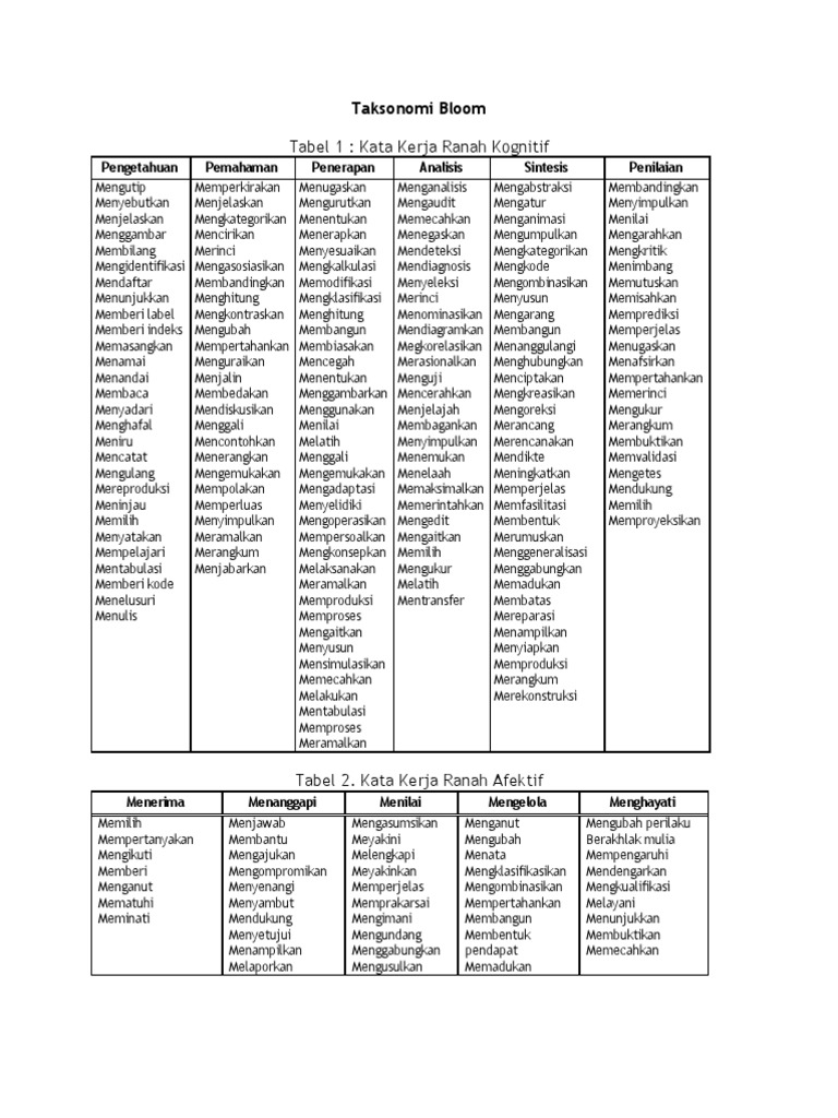Kata kerja ranah kognitif. Menerima receiving menanggapi responding menilai valuing mengorganisasi organization menjadi karakter characterization memilih menjawab mengasumsikan menganut mengubah perilaku mendengar membantu meyakini mengubah berakhlak mulia. 1 k a t a k e r j a o p e r a s i o n a l kata kerja operasional kko edisi revisi teori bloom ranah kognitif mengingat c1 mengetahui. Kata kerja operasional yang dapat dipakai dalam kategori ini adalah. Salah satu jasil belajar kognitif dari jenjang sintesis ini adalah.