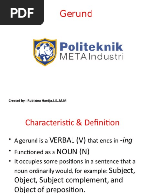 Semua kata kerja ini dapat diikuti oleh kata benda dan gerundingatlah bahwa gerund selalu berfungsi sebagai kata benda dalam kalimat. Hai sahabat sbi yang baik hatinya. Kata kerja yang diikuti oleh gerund dan infinitive. Gerund biasanya digunakan setelah beberapa kata kerja yang berbeda.