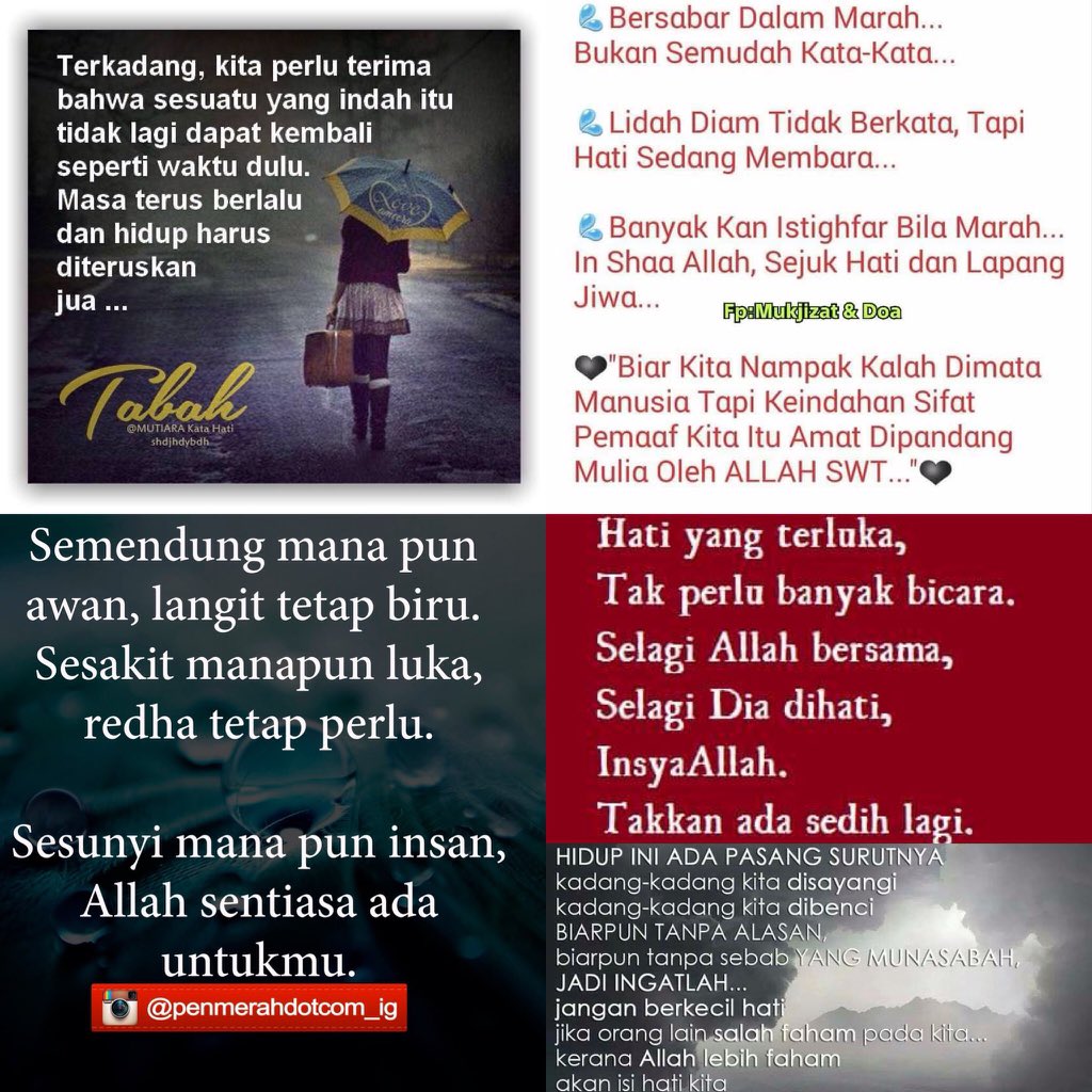 Kata mutiara hati yang sedih. Perbaiki kualitas dengan rajin beribadah gigih serta tetap berpegang teguh pada prinsip. Penyembuhannya lebih sering menggunakan terapi verbal. 10 kata kata yang lembut dapat melembutkan hati yang lebih keras dari batutetapi kata kata yang kasar dapat mengasarkan hati yang lunak seperti sutera. Wajar karena hubungan asmara tak hanya memakai otak tapi juga sanubari.