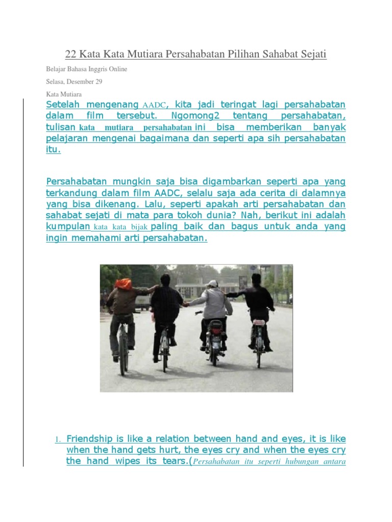 1123 kumpulan kata kata bijak motivasi bahasa inggris beserta tentang kehidupan dan cinta beserta artinya lengkap dan terbaru. 46 kata mutiara bijak persahabatan pilihan dalam bahasa inggris dan artinya yang terbaru penuh makna kbi semua kata ini kami ambil dari salah satu buku teja kusuma. Kata mutiara bahasa inggris tentang persahabatan friendship one of the most beautiful qualities of true friendship is to understand and to be understood lucius annaeus seneca satu dari ciri ciri persahabatan sejati adalah mengerti dan dimengerti. Berhubung saya lagi baik hati halah dan dilimpahi keadaan baik oleh tuhan saya membagikan kata kata bijak ini kepada kalian.