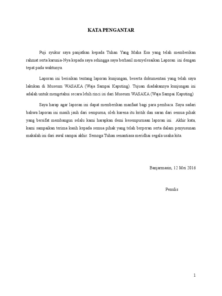 Kata pengantar laporan kunjungan. Contoh kata pengantar makalah. Adhya tirta batam dan laboratorium kimia. Sayangnya penulisan kata pengantar kadang dipandang sebelah mata dan dianggap spele bahkan dalam pembuatannya banyak yang masih asal asalan. Demikianlah contoh kata pengantar laporan prakerin 2017 semoga dapat membantu sobat sekalian dalam menyusun laporan contoh kata pengantar laporan kunjungan industri.