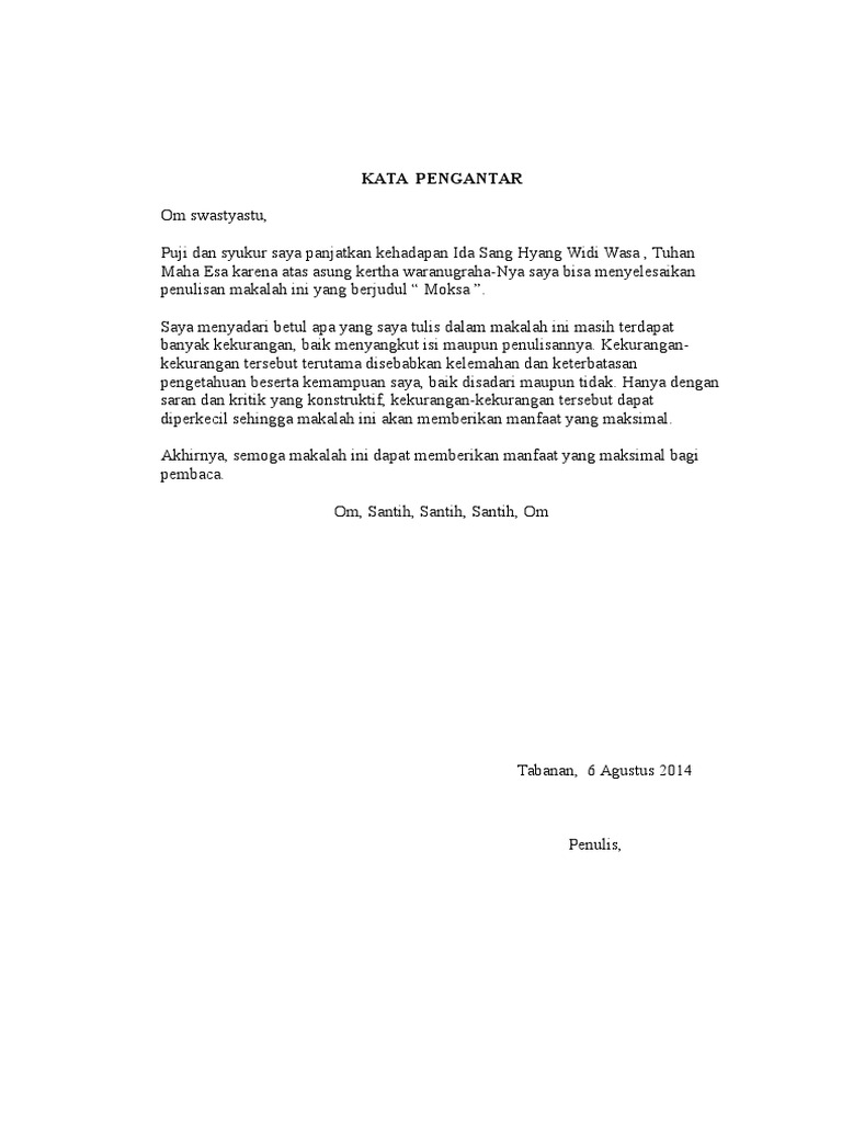 Contoh makalah agama hindu kata pengantar. Sma negeri 1 ladongi. Om swastyastu atas asung kertha wara nugraha ida sang hyang widhi wasa tuhan yang maha esa pada akhirnya makalah ini tersusun dalam bentuk yang sederhana setelah banyak rintangan baik teknis maupun non. Makalah ini dibuat untuk memenuhi tugas makalah mata kuliah studi agama agama yang dibina oleh drs.