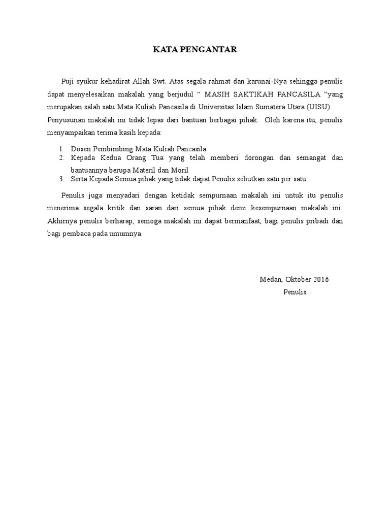 Kata pengantar makalah pancasila. Adapun maksud dan tujuan dari penyusunan makalah ini selain untuk menyelesaikan tugas yang diberikan oleh dosen pengajar juga untuk lebih memperluas. Contoh kata pengantar makalah sejarah. Karena makalah atau laporan akan terlihat kurang baik dan lengkap bila tidak disertai dengan ucapan kata pengantar di dalamnya. Academiaedu is a platform for academics to share research papers.