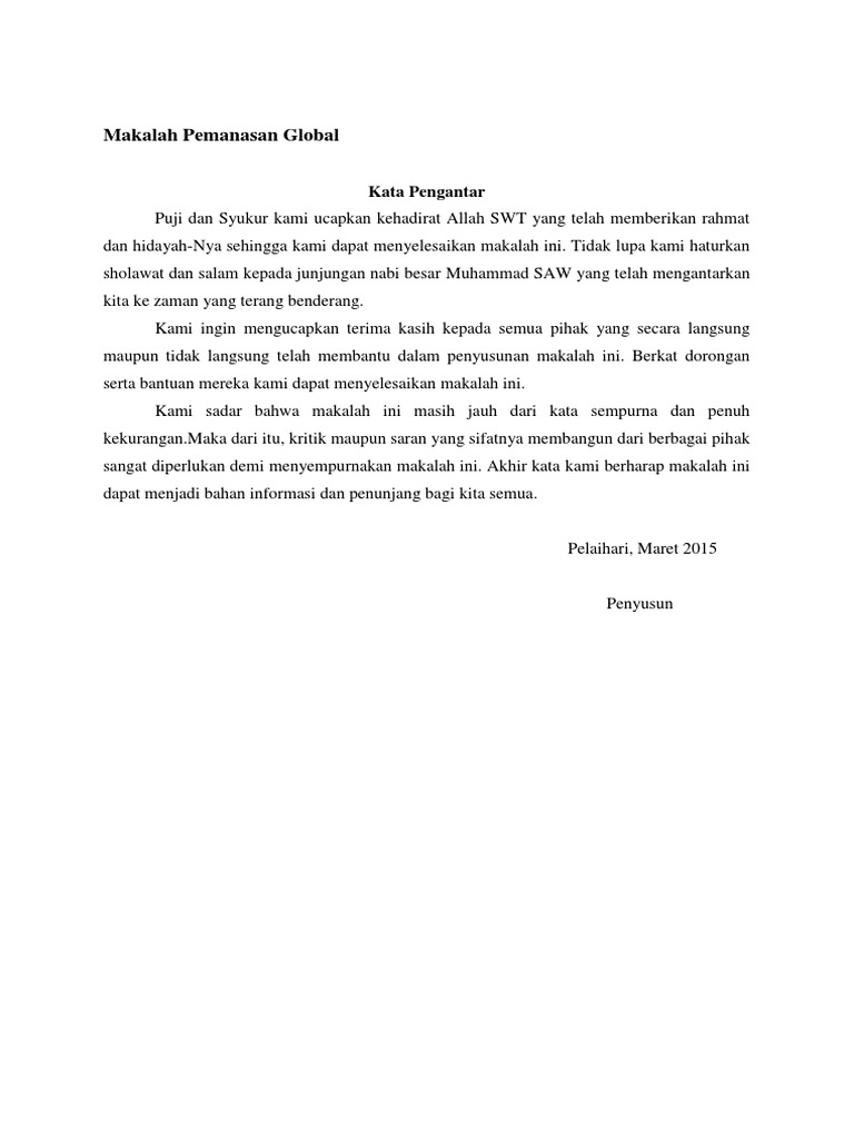 Kata pengantar makalah pemanasan global. Dalam beberapa tahun terakhir isu pemanasan global semakin sering dibicarakan baik dalam skala kecil sampai tingkat internasional. Kata pengantar puji dan syukur penulis haturkan kepada tuhan yang maha esa karena atas berkat dan rahmat nya. Semoga makalah ini dapat dipergunakan sebagai salah satu acuan petunjuk maupun pedoman dan harapan saya semoga makalaah ini membantu menambah pengetahuan dan pengalaman bagi para pembaca tentang pemenasan global dan perubahan iklim sehingga penulis dapat memperbaiki bentuk maupun isi makalah ini sehingga kedepannya dapat lebih baik. Makalah ini akan membahas definisi pengertian.
