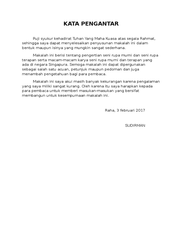 Contoh kata pengantar makalah singkat 1 dengan menyebut nama allah swt yang maha pengasih dan maha penyanyang. Penyusunan laporan ini untuk memenuhi tugas ujian praktek seni budaya dan sebagai ajang. Contoh kata pengantar makalah seni budaya kata pengantar puji syukur. Kliping ini berisi tentang seni dan budaya indonesia.