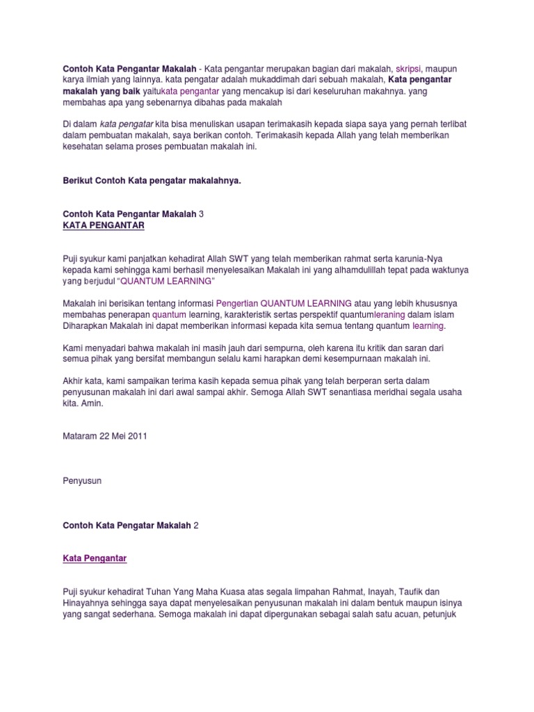 Contoh kata pengantar kata pengantar merupakan hal yang penting dalam suatu karya ilmiah baik itu makalah skripsi maupun karya tulis lainnya. Biasanya untuk awalan disusun dengan ucapan pembuka kemudian ucapan rasa syukur kepada yme yang maha esa serta mengucapkan terima kasih kepada orang yang bersangkutan dalam penulisan karya ilmiah kita seperti dosen pembimbing orang tua rekan rekan dan lainnya. Alhamdulillah puji syukur kehadirat allah swt yang telah memberikan rahmat dan inayah nya sehingga kami dapat menyelesaikan laporan jenis laporan yang berjudul judul laporan. Kami juga sediakan file editable yang bisa kamu unduh link ada di paragraf paling bawah ya.