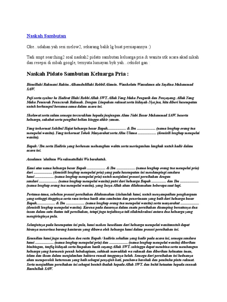 Fajar novanto putra pertama dari dua bersaudara. Teks sambutan wakil mempelai pria contoh terbaik contoh 1 sambutan atas nama keluarga dua mempelai bismillaahir rohmaanir rohiim. Pemeriksaan ini lantaran diduga kuat keduanya sengaja menyembunyikan identitas mtr dalam pernikahan sejenis antara mt 21 sebagai mempelai wanita dengan mtr 24 sebagai mempelai pria yang belakangan diketahui adalah juga seorang wanita. Berikut contoh kata sambutan pernikahan dalam acara resepsi.