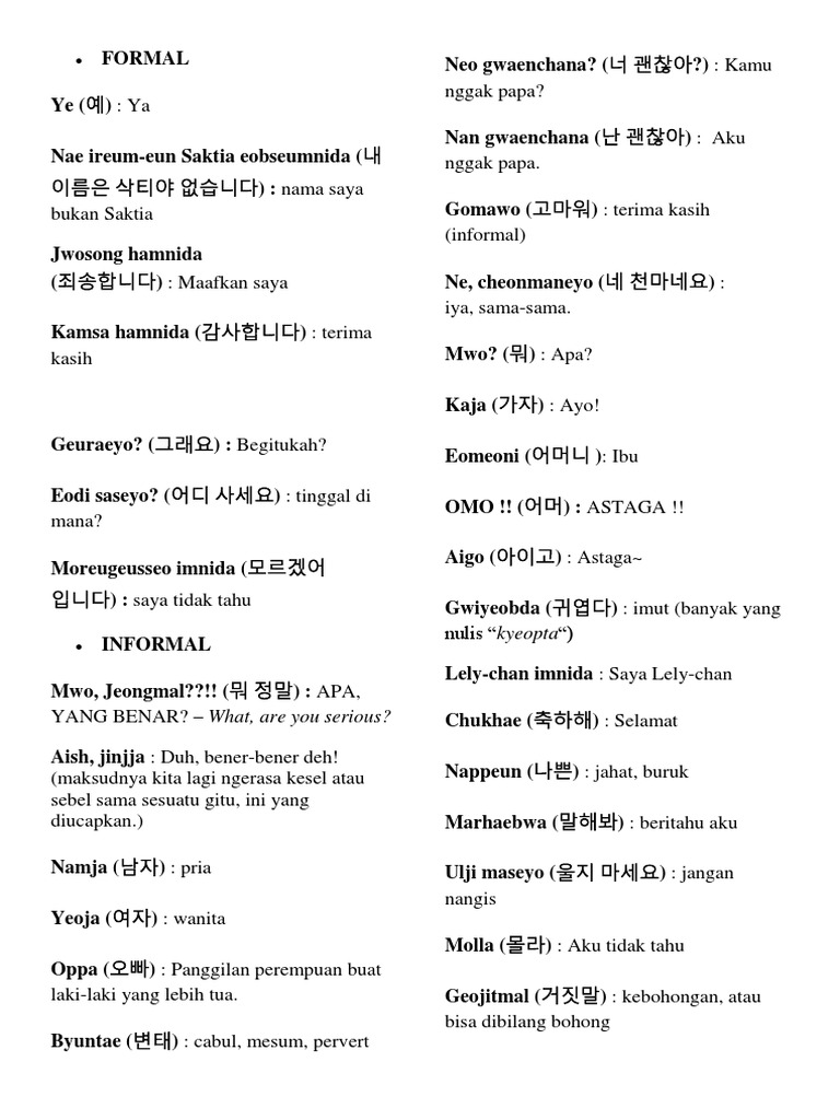 Simak juga kumpulan materi kbi lainnya. Kalau sobat ada kata kata yang lain dan tidak terdapat diatas bisa bantu lewat menuliskannya di kotak komentar. Masih ada banyak bahasa kasar kata umpatan bahasa korea yang lainya. Ketawa terus liat film itu y kalok ngumpat keren lagi yakkk sunny siphal yo.
