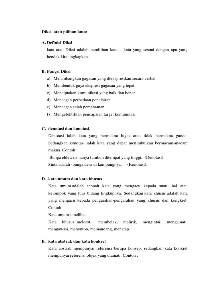 Sedangkan kata khusus adalah kata yang memiliki ruang lingkup sempit dan terbatas. Kata umum dan kata khusus kata umum adalah kata kata yang mempunyai makna serta cakupan pemakaian yang lebih luas. Kata umum adalah kata yang memiliki ruang lingkup luas dan masih bisa diperinci serta dijabarkan lebih lanjut. Pengertian kata umum dan khusus kata ikan memiliki acuan yang lebih luas daripada mujair atau tawesikan tidak hanya mujair atau tidak hanya tawes tetapi ikan terdiri atas beberapa macam seperti gurame lele sepat tuna baronang nila ikan koki dan ikan massebaliknya tawes pasti tergolong jenis ikan.