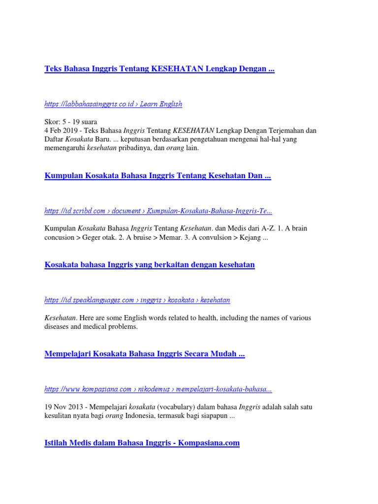 Kosa Kata Bahasa Inggris Tentang Kesehatan