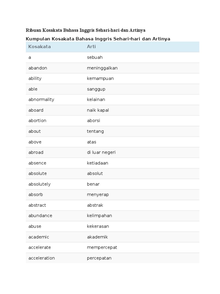Kosa kata dan artinya. Berikut adalah daftar kata benda nouns dalam bahasa inggris dan artinya dalam bahasa indonesia. Berbeda dengan beberapa situs web website sejenis kami berusaha memberikan berbagai fitur lebih seperti kecepatan akses tampilan dengan berbagai warna pembeda untuk. Bahkan a dan an yang artinya sebuah adalah sebuah kosakata parts of speech baik kata kerja kata benda kata sifat dan yang lainnya juga merupakan vocabularyjadi memang benar bahwa vocabulary sangatlah banyak. Dibawah ini adalah contoh kosakata bahasa inggris kata benda noun yang perlu kamu hafalkan ayo semangat menghafal.