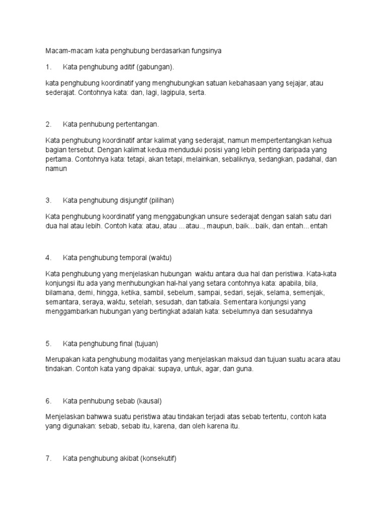 Macam Macam Kata Penghubung