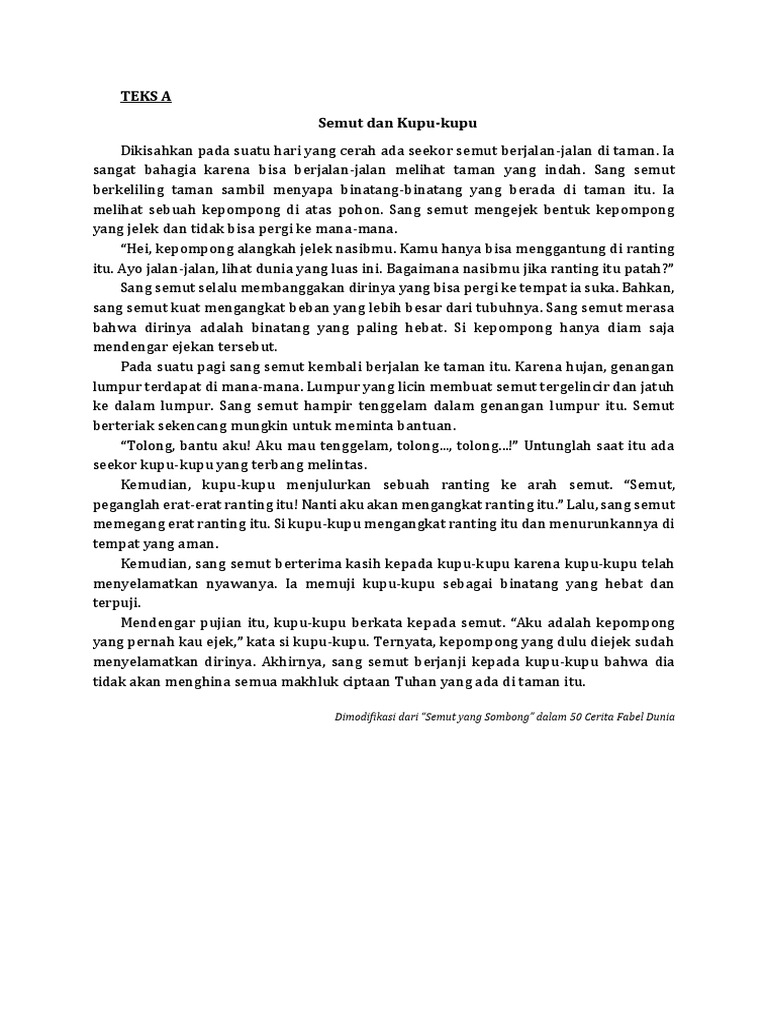 Makanya semut kau harus berlatih berenang kata ikan. Kalimat langsung dengan kalimat pengiring setelah petikan lengkap pada awal dan akhir kalimat langsung 5. Coba saja minta sama semut kata ulu dia pasti akan memberikannya. Aku sejak berupa berudu sudah bisa berenang kata ulu.